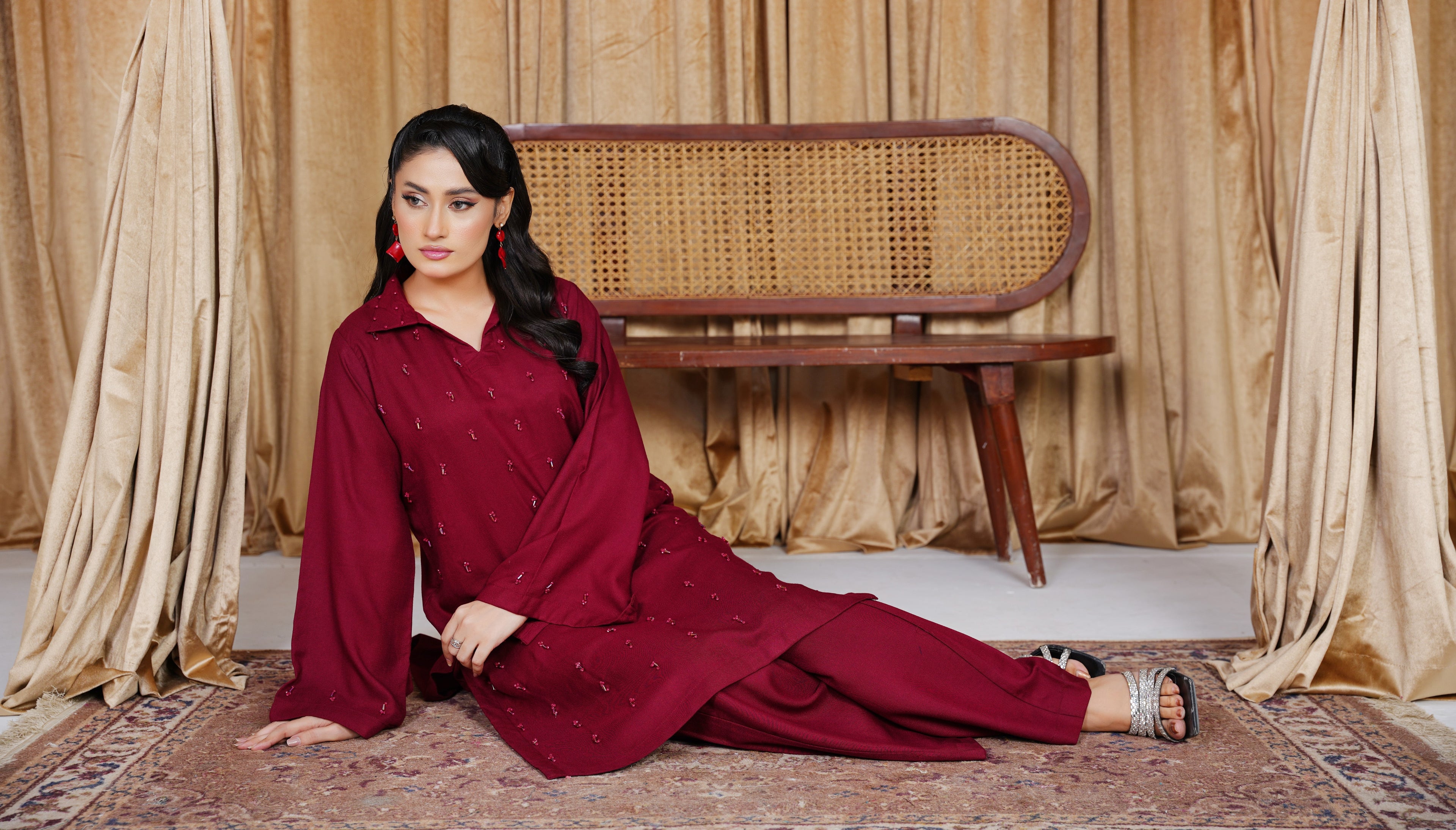 Crimson Charm | Embroidered Dhanak 2Pc – Noureza