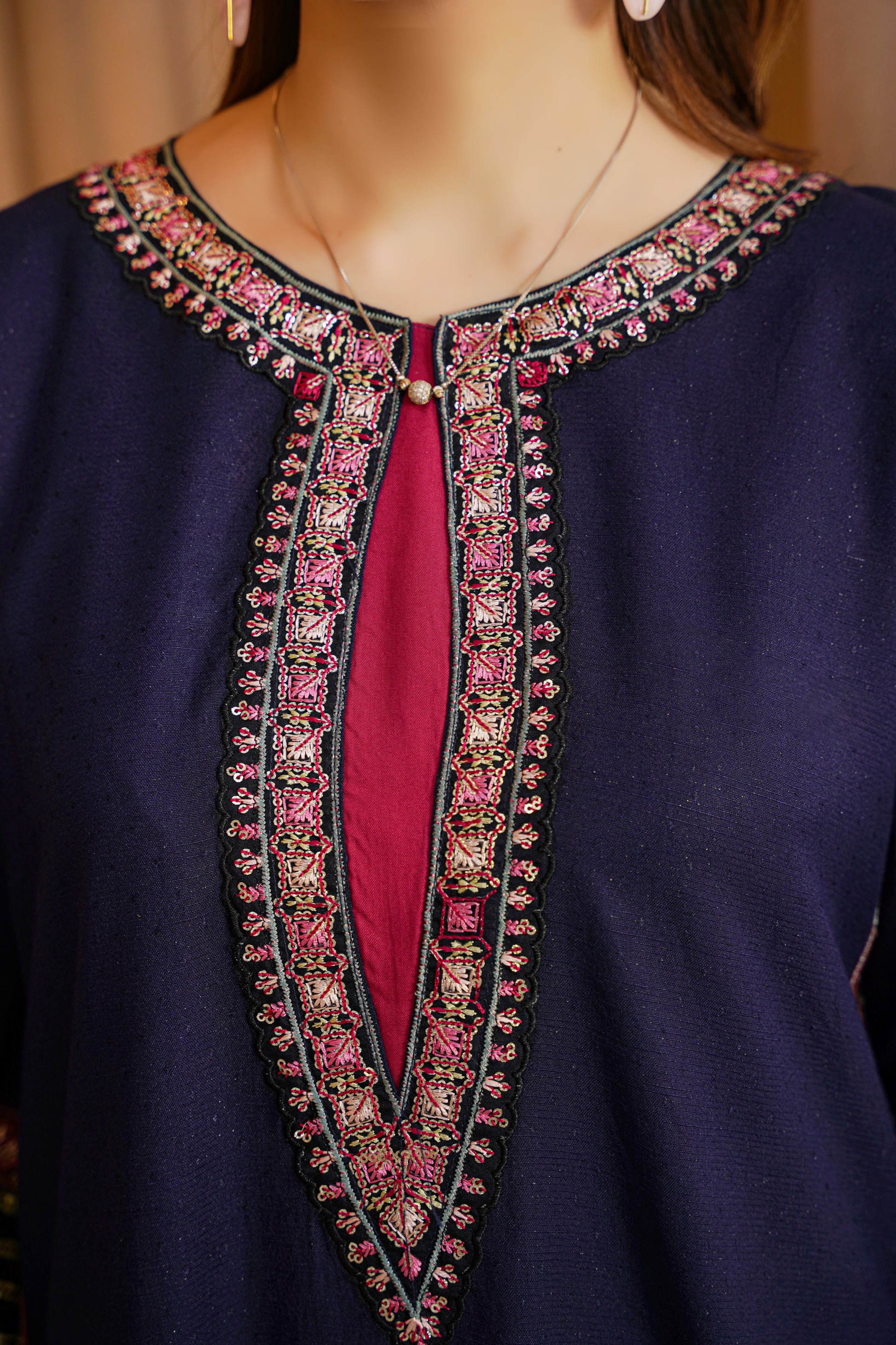 Embellishments: Embroidered Neckline & Sleeves